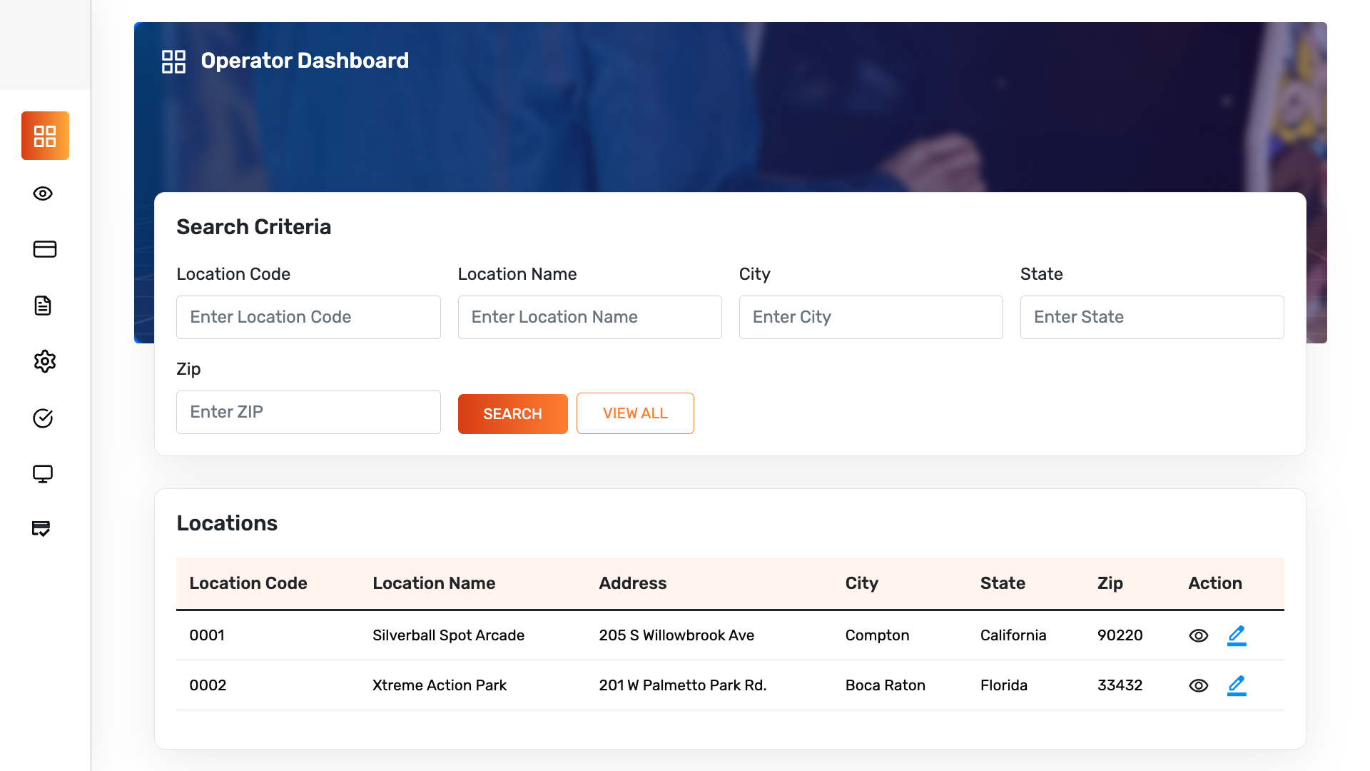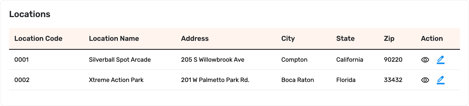 When you first log in, you will see the Dashboard, which displays all locations where you have Cantaloupe Play equipment installed. On the right side of the screen, you will find options that allow you to view or edit the machine list for each of your locations, providing quick access to manage your equipment efficiently.