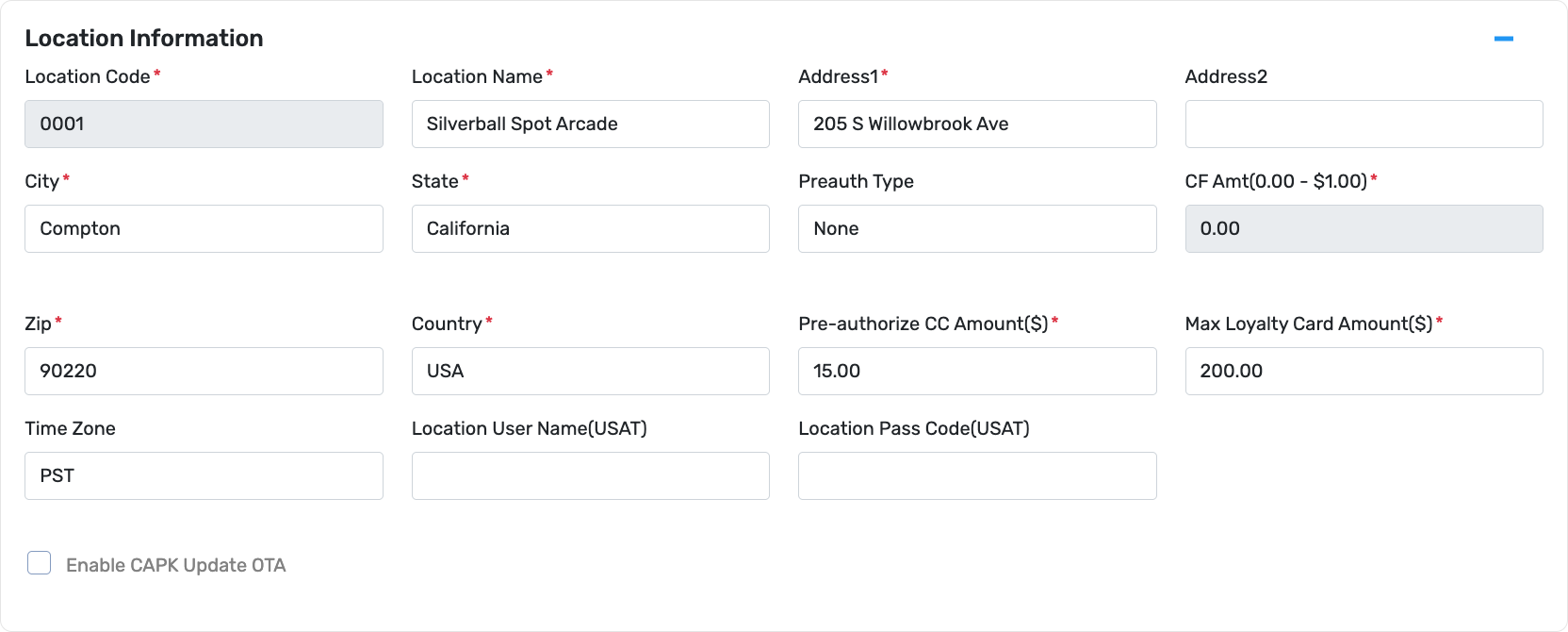 The Location Information tab is minimized by default. Click on the tab to view and edit the details and settings.
